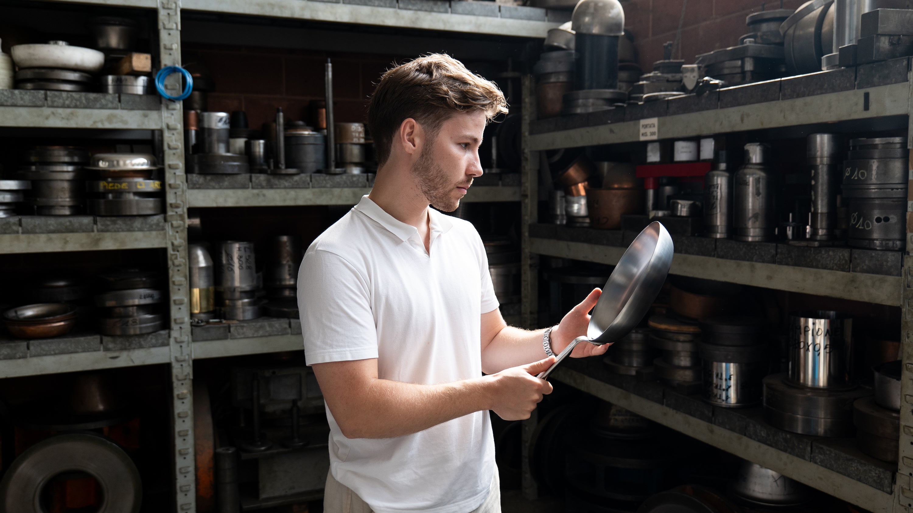 Our pans are handmade in Italy by our friends and partners Franco, Mario and Eliano, who carefully craft each product in their family workshop with over 130 years of expertise. It's Danish design, Italian craftsmanship and your guarantee of top-shelf quality.