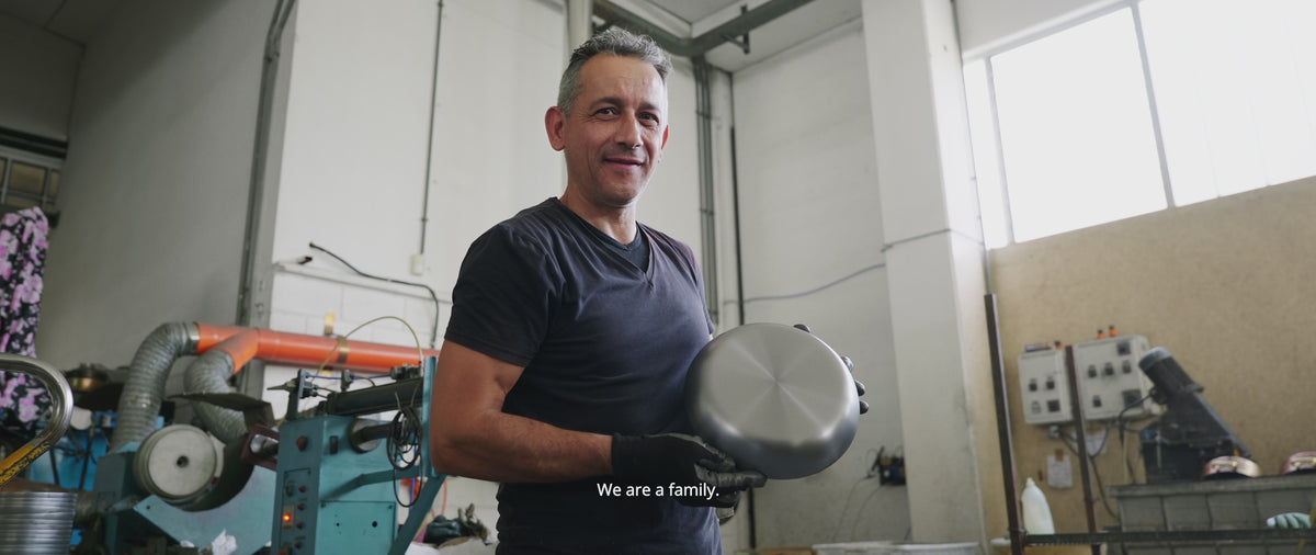 Our pans are handmade in Italy by our friends and partners Franco, Mario and Eliano, who carefully craft each product in their family workshop with over 130 years of expertise. It's Danish design, Italian craftsmanship and your guarantee of top-shelf quality.