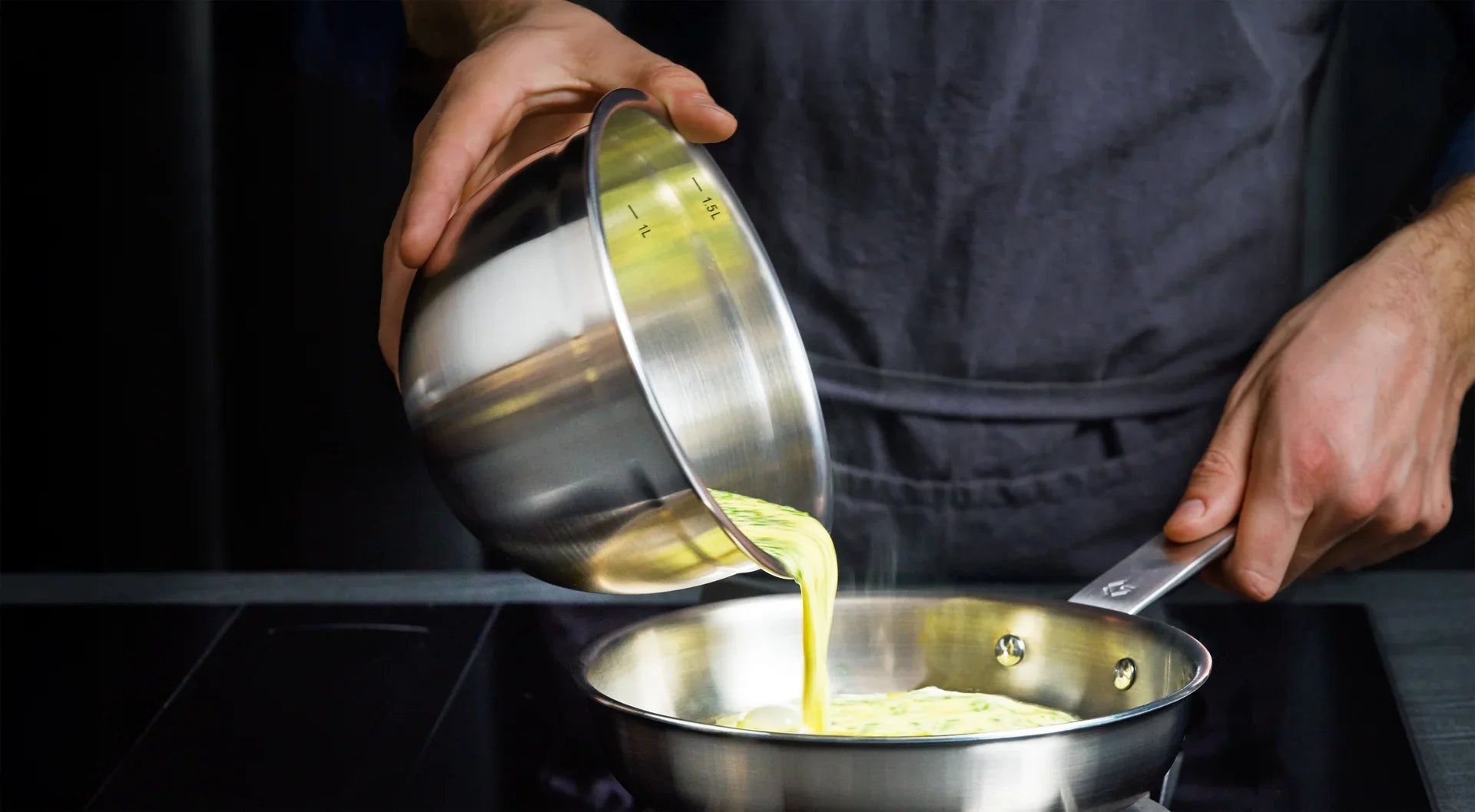 The mixing bowls are made of durable stainless steel and designed to last a lifetime. The 100% stainless construction makes them resistant to both daily use and extreme temperatures, whether you use them for boiling water or frozen desserts. Their stackable design ensures they take up minimal space in the kitchen cabinet, while the timeless look fits into any kitchen style.