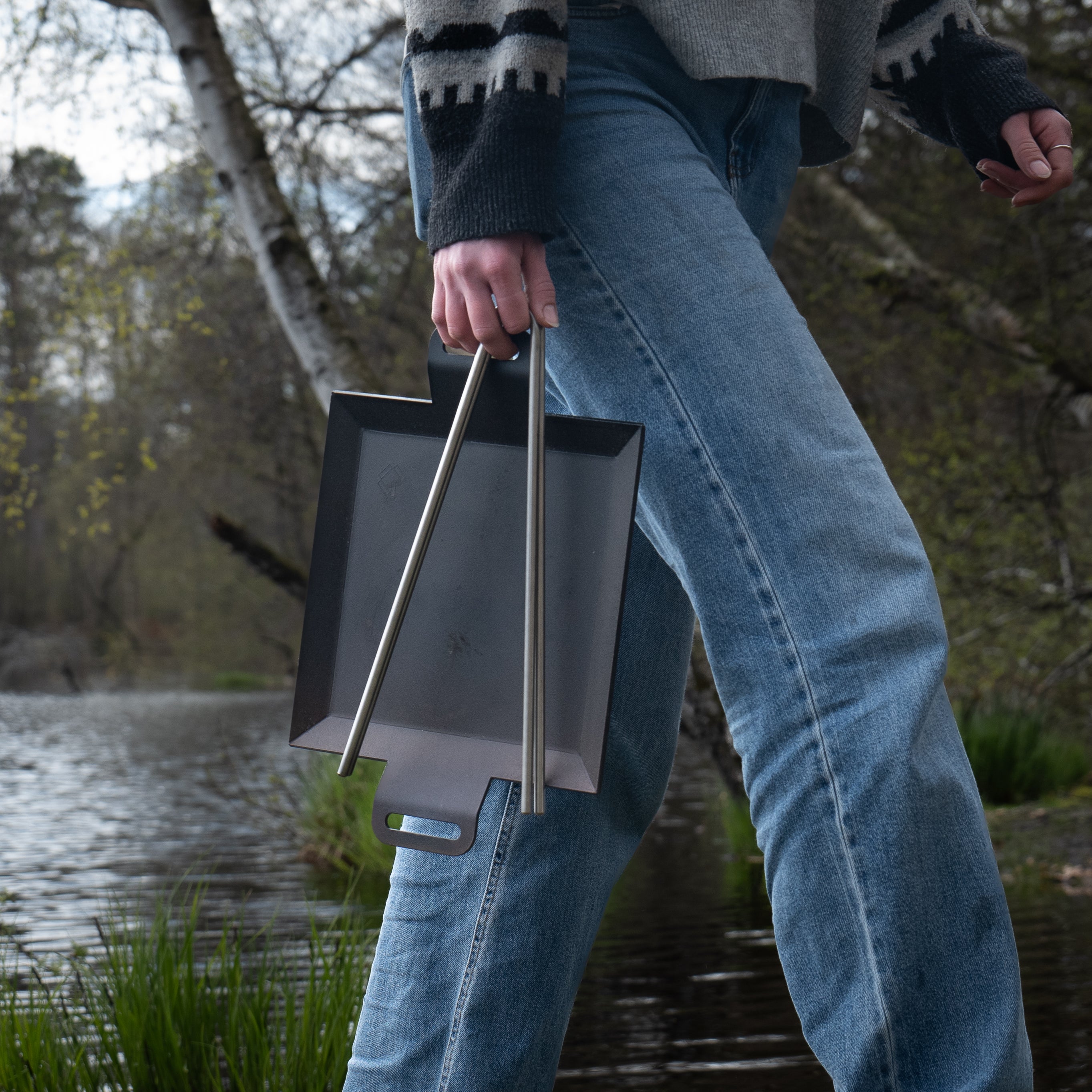 The fire stand is made in Sweden just like the griddle. You can easily pack it down and take it on the go thanks to its lightweight and functional design. The fire stand is easy to maintain and built to last a lifetime with its robust stainless steel construction. It's simple to use: set up the fire stand and griddle, light your fire, and cook directly on the griddle - or use the griddle as a mobile stove for your pot.