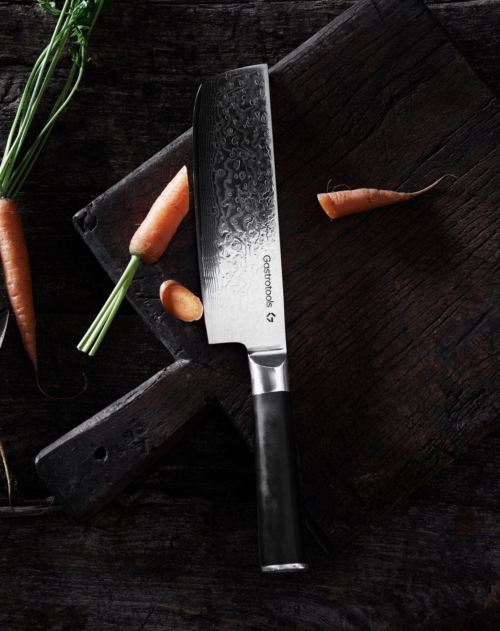 Gastrotools' Nakiri vegetable knife is forged from no less than 67 layers of steel. The 18 cm sharp blade combined with an extremely strong G10 composite handle ensures you a firm and ergonomic grip, even when slicing vegetables for extended periods.