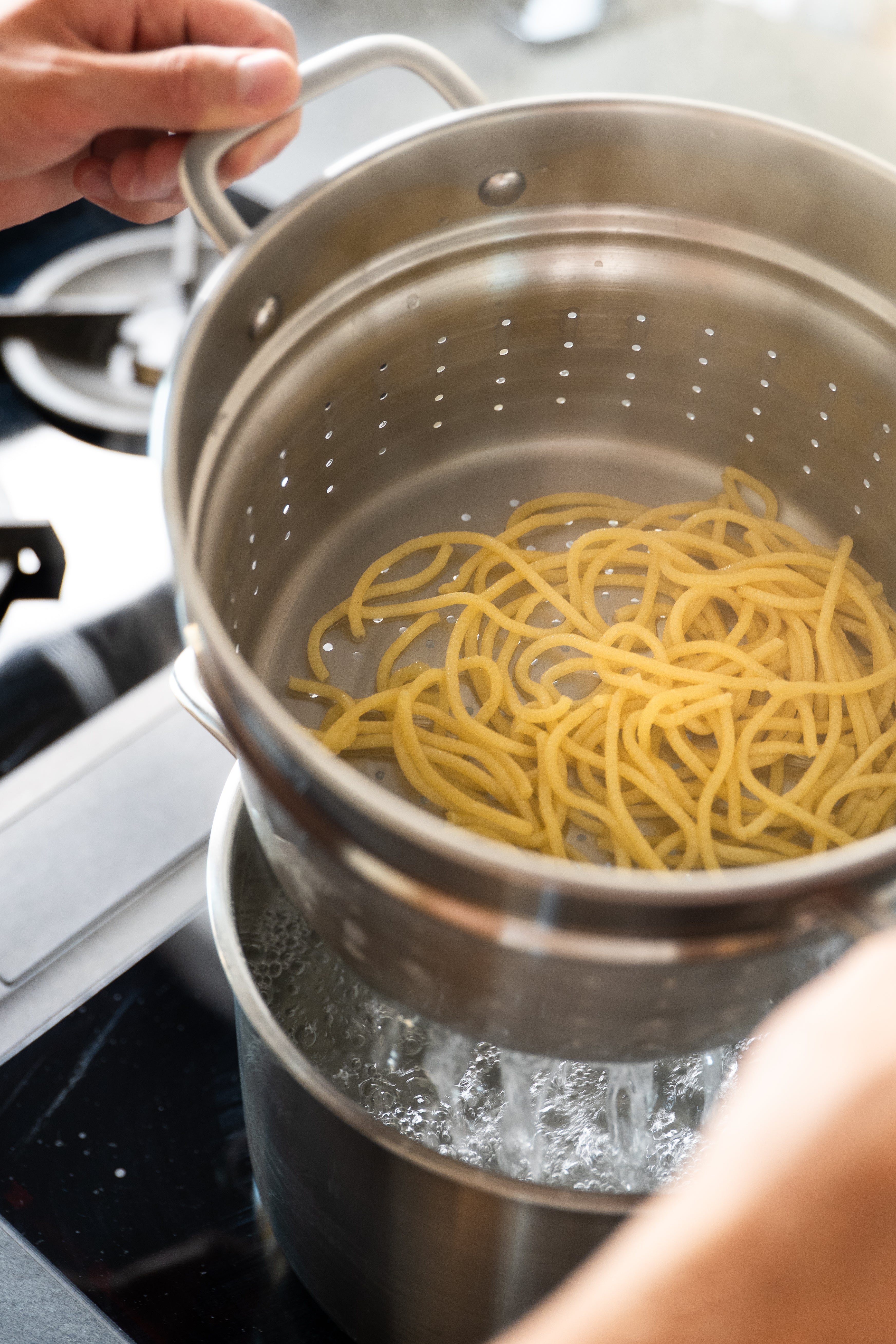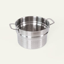 The insert is made in Italy by the same family-owned company that makes our 5-ply cookware. It is designed to fit perfectly in our large 5-ply pot, and the many small holes ensure that the pasta stays where it should. But the insert isn't just for pasta: use it to blanch asparagus, cook potatoes, or boil large quantities of eggs. And with its stainless steel construction, the pasta insert is both durable and easy to maintain.