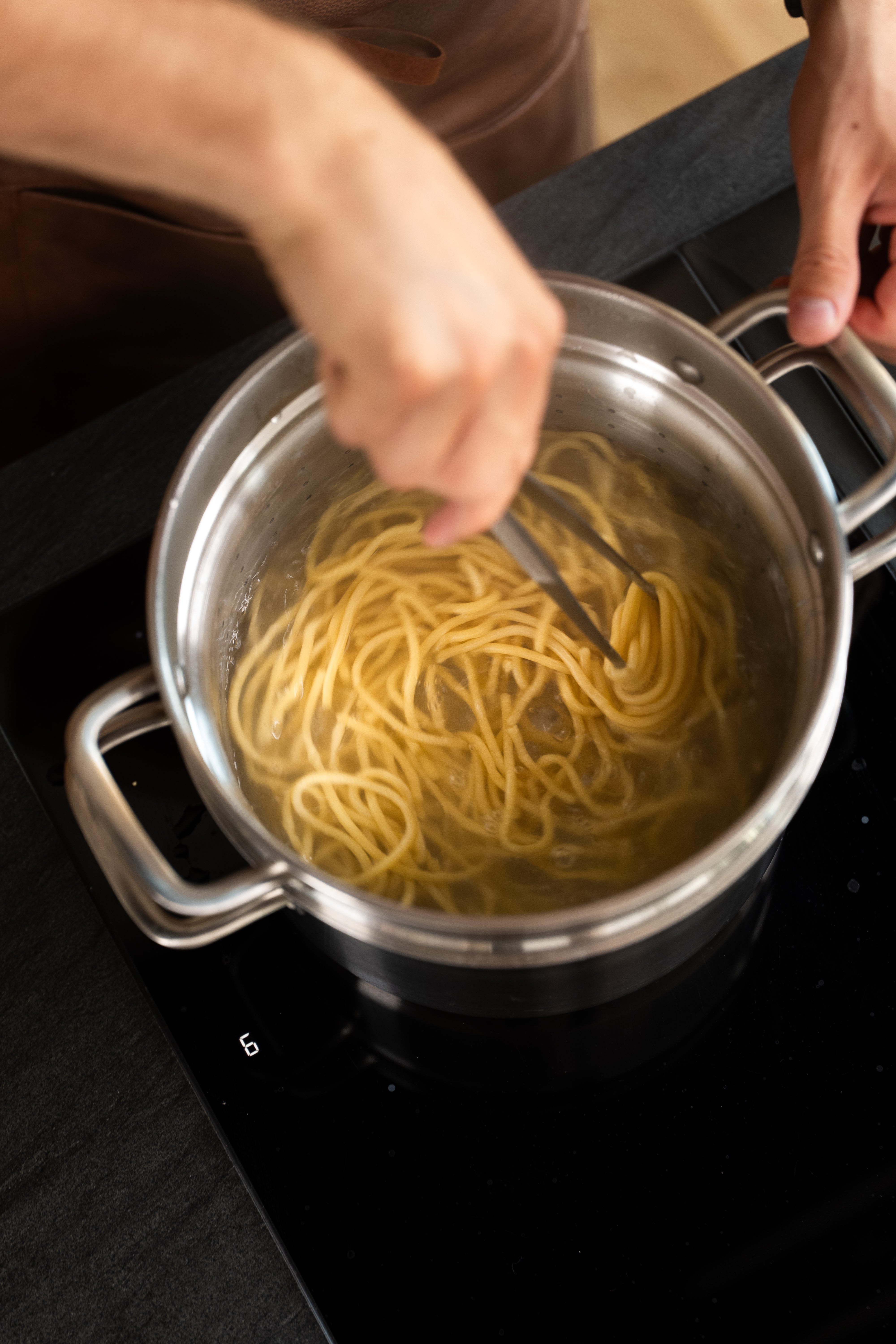 The pasta insert is designed to cook perfect pasta without the hassle of pouring boiling pasta water from the pot, which often results in pasta in the sink or boiling water on the floor. The sturdy handles on the insert make it easy to lower it into boiling water without burning yourself, and just as easy to lift the insert out when the food is ready. And if you need to rinse the contents in cold water to stop cooking, you can easily lift the insert over the cold tap.