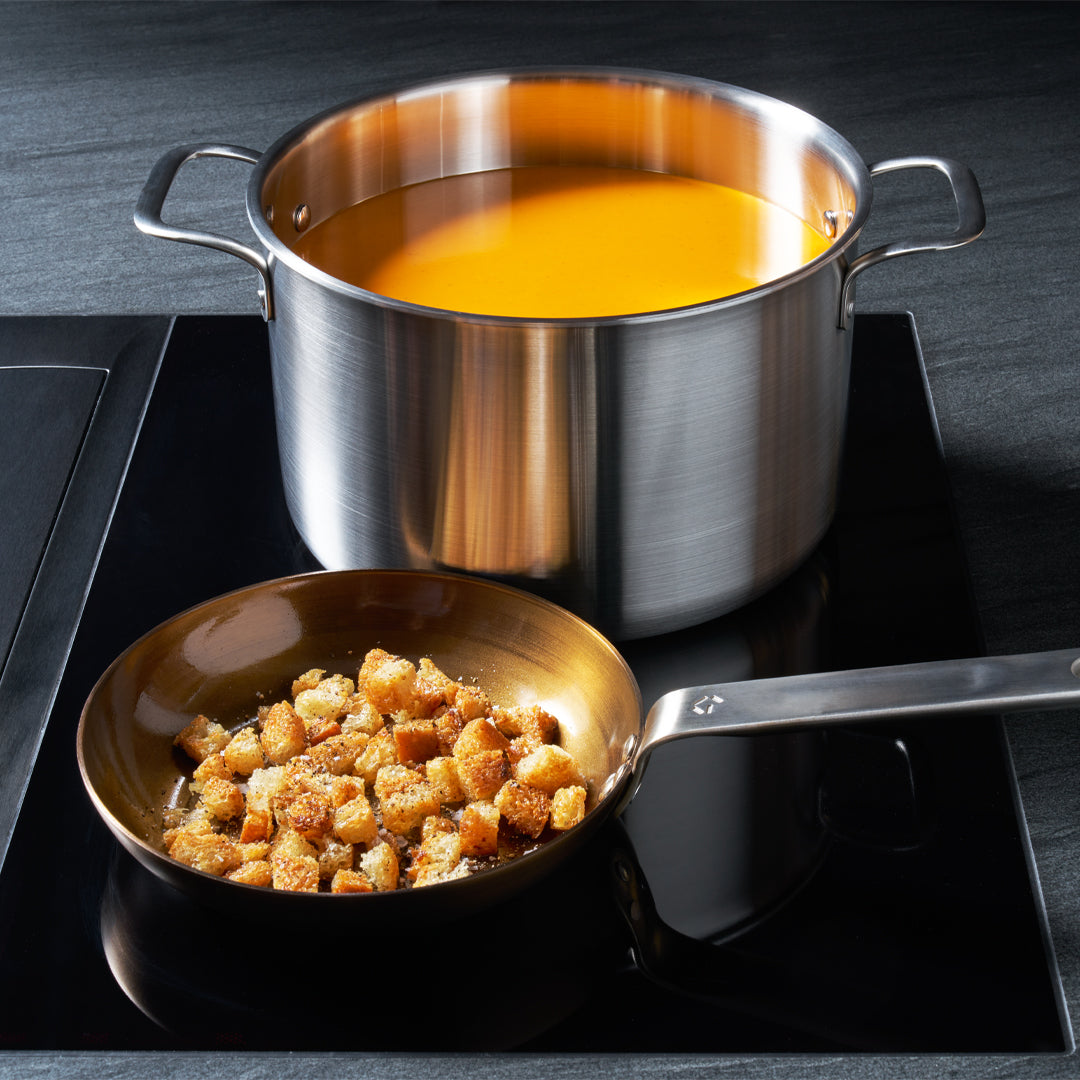 You’ll achieve precise heat control thanks to its aluminium core, which offers outstanding heat conduction, allowing you to quickly adjust the temperature. Unlike cookware with an attached sandwich base, the heat naturally spreads up the sides of the pot, as the entire pot is made of 5-ply construction – perfect for dishes like risotto and slow-cooked recipes.