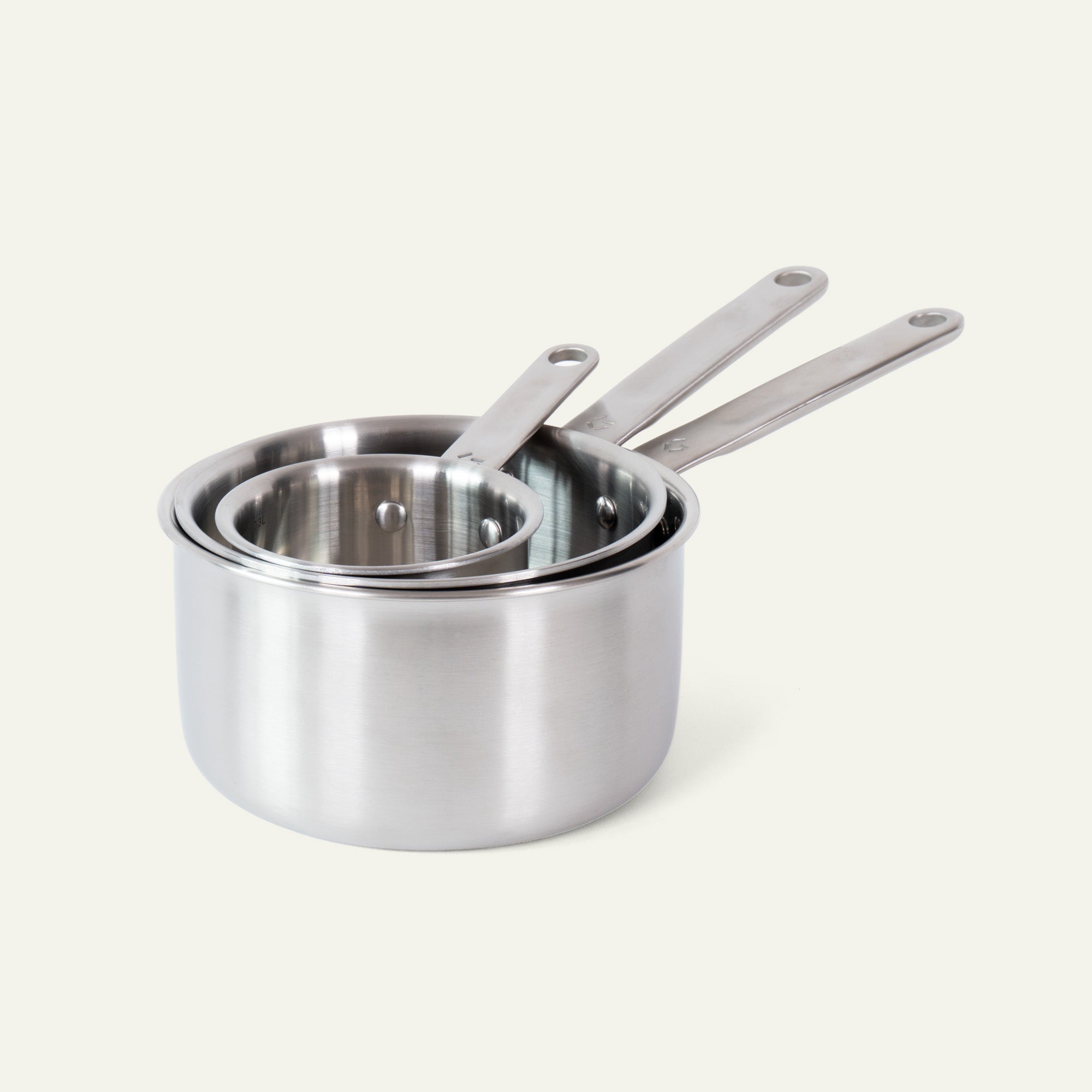 With 5-ply, you get a durable set that will last a lifetime with all the benefits of stainless steel: low maintenance, suitable for all types of cooking, and no PFAS or other harmful coatings that wear off over time and end up in your food.