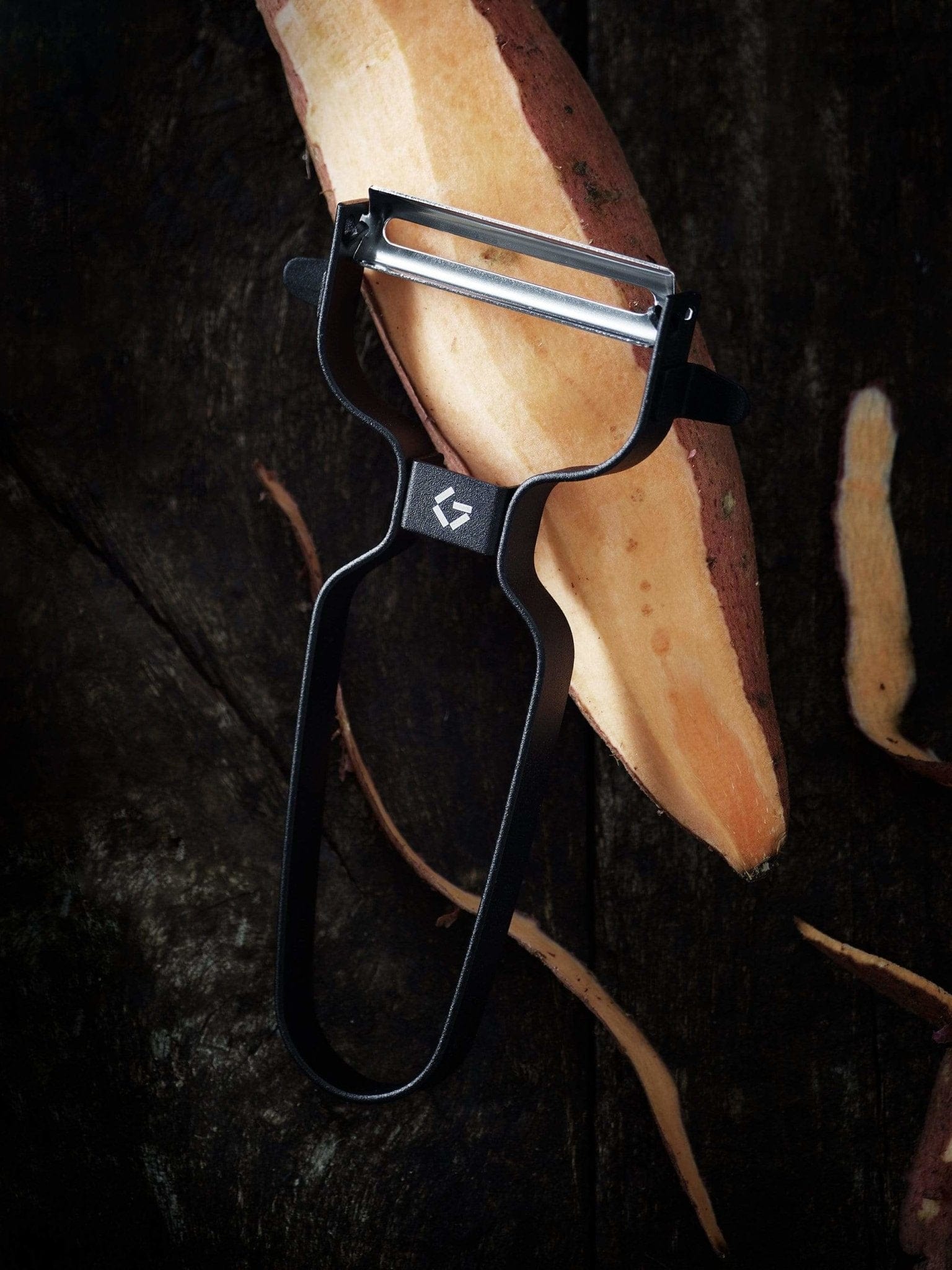 - Ergonomic peeler in matte black finish and ultra-sharp blade