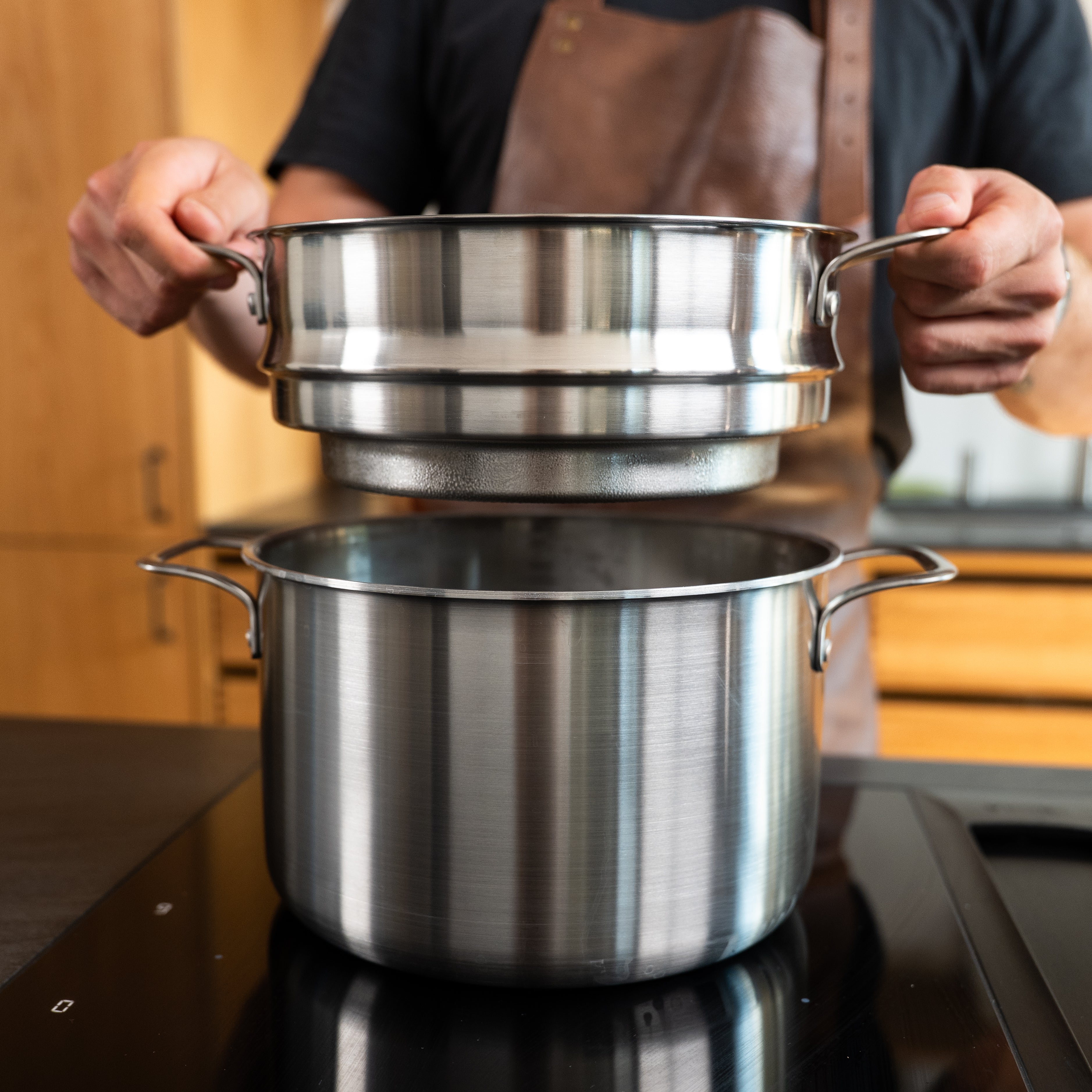 A steam insert is the ideal upgrade for your 5-ply pots. If you have tried steaming in your pot without a steam insert, you know that it is not an easy task. With a steamer insert, you get a tool that is designed to make it as easy as possible: boil water in the bottom of the pot and place the insert inside – without burning your fingers.