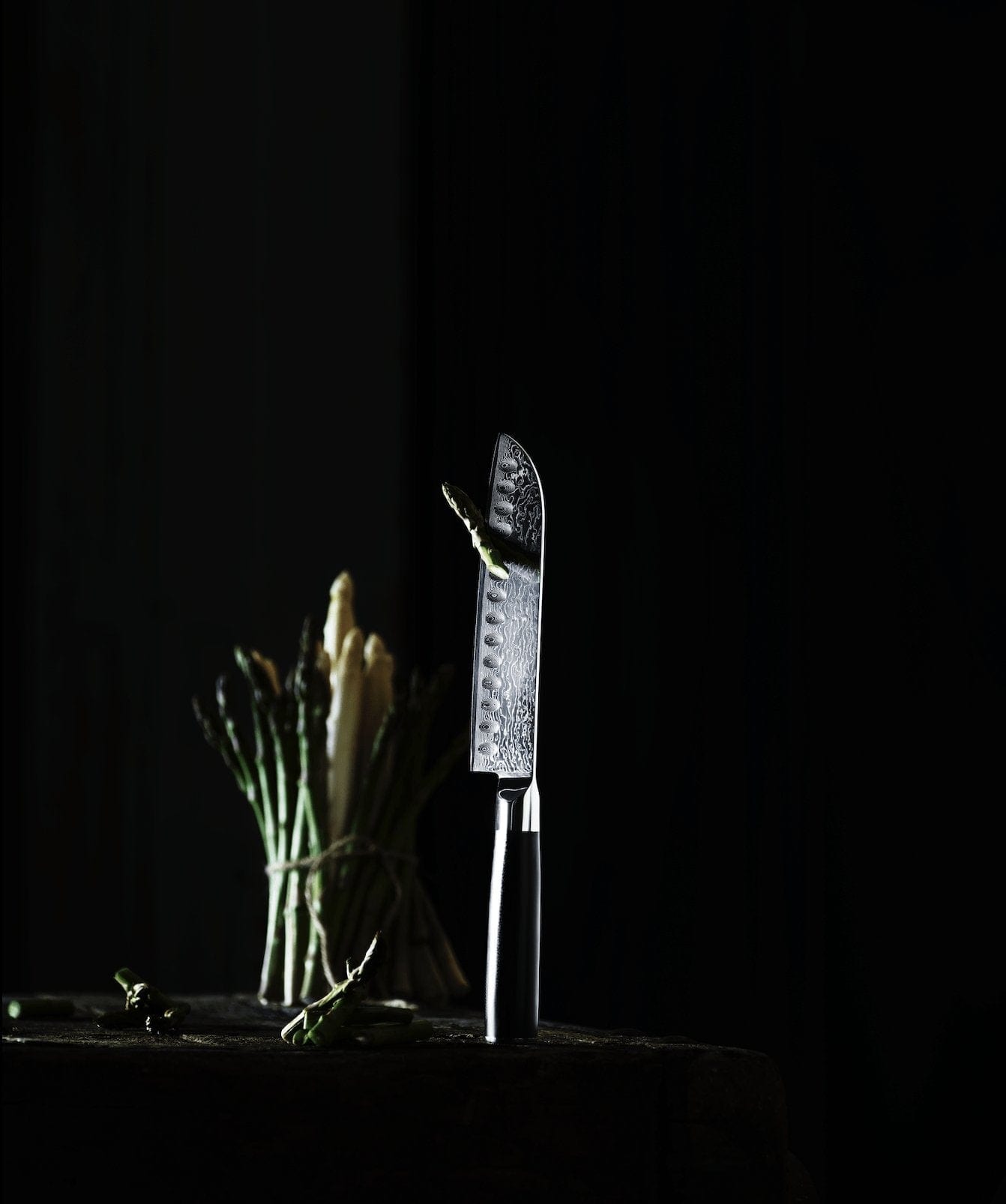 Not only are our kitchen knives a visual delight with their 67 layers of steel creating a breathtaking wave pattern, but each layer also contributes to a strength that protects the core and ensures the knife's integrity. Whether slicing, chopping, or filleting, our kitchen knives express a design balance between art and science.