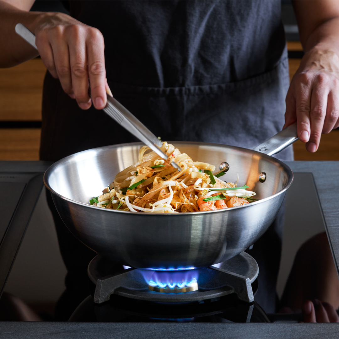 We asked Denmark's top chefs what the ultimate range of pots and pans should look like, and here it is. Featuring professional details such as a pouring rim, CoolGrip handle, and materials used in the world’s finest restaurants. The wok’s flat base makes it perfect for home kitchens – whether you’re making stir-fry, fried rice, or tossing a pasta dish along its curved sides.